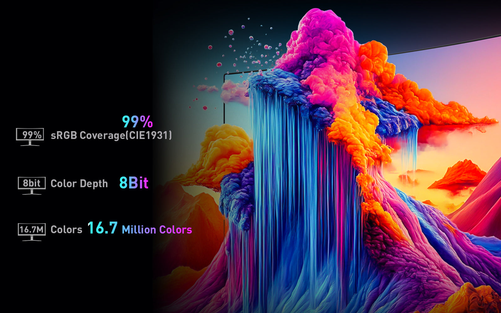 Das native 8-Bit-Panel mit 99 % sRGB-Abdeckung verbessert die Farbleistung für eine sattere und genauere Anzeige.