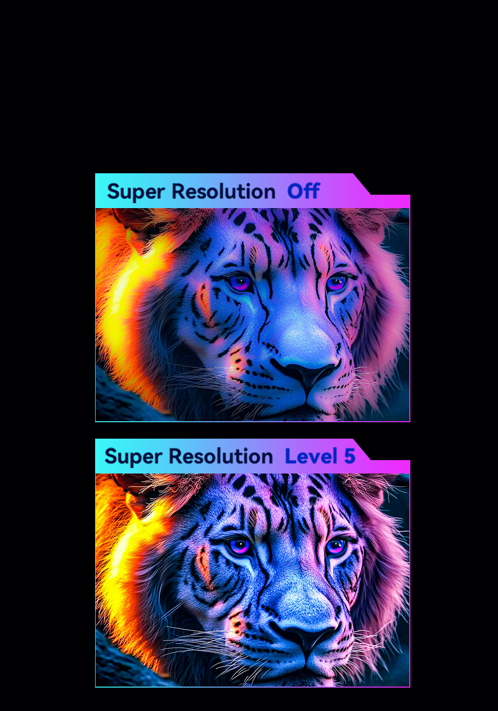 Optimieren Sie die Bildfarben mit bis zu 10 präzisen Stufen zur allgemeinen Bildverbesserung. So werden die Bildfarben lebendiger und satter, ohne dass die Farbdetails verloren gehen, und gleichzeitig bleibt ein natürliches und angenehmes Bild erhalten.