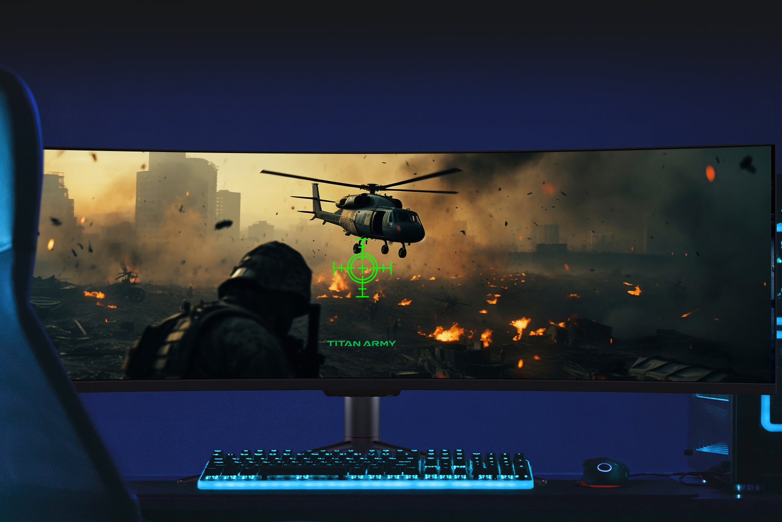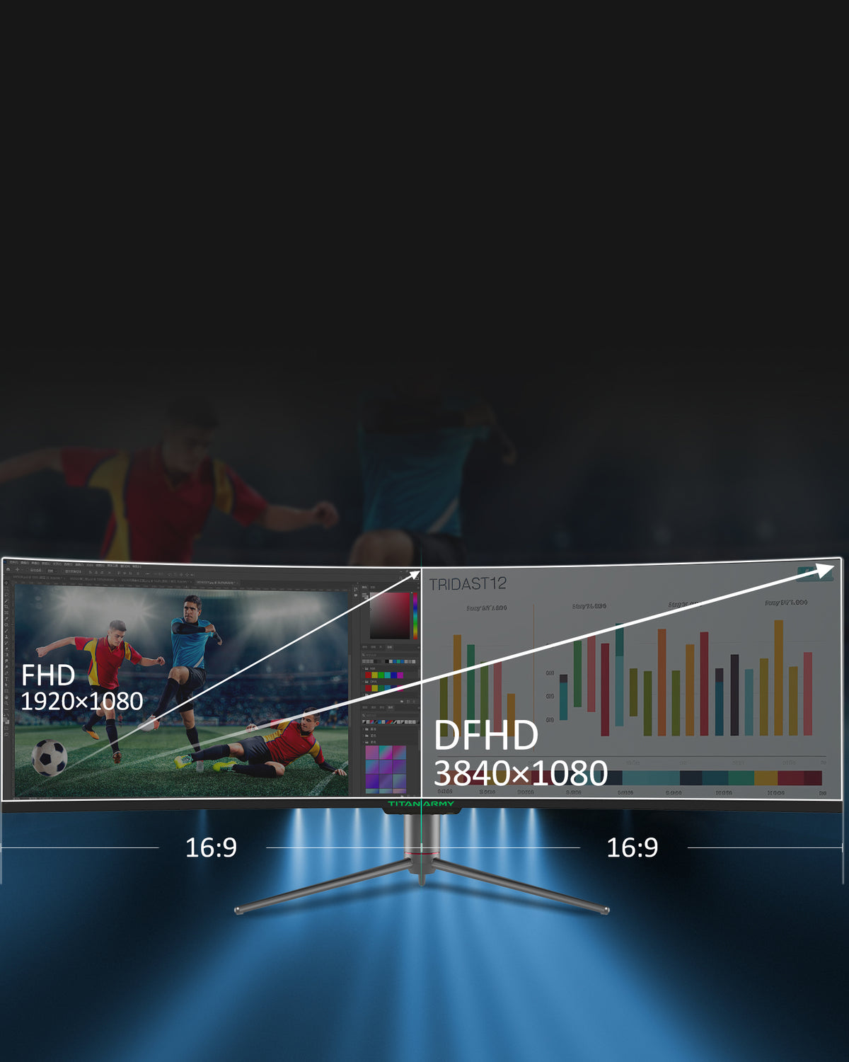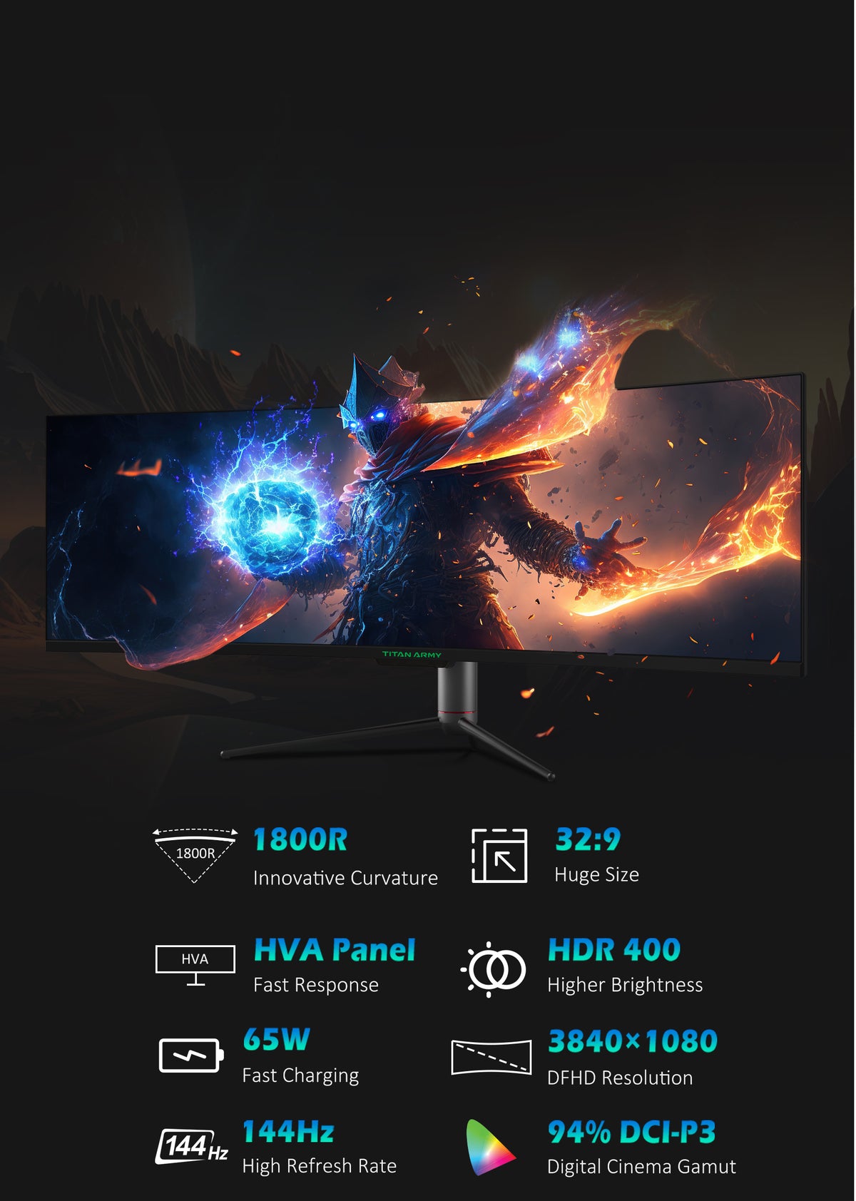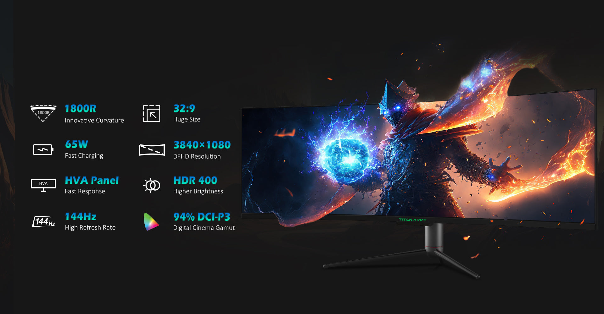 El monitor para juegos cuenta con una resolución de DFHD 3840×1080, mostrando detalles con una claridad inigualable para visuales impresionantes. Con una frecuencia de actualización alta de 144Hz, Titan Army ofrece a los usuarios una experiencia de juego más fluida y una reducción efectiva del desenfoque.
