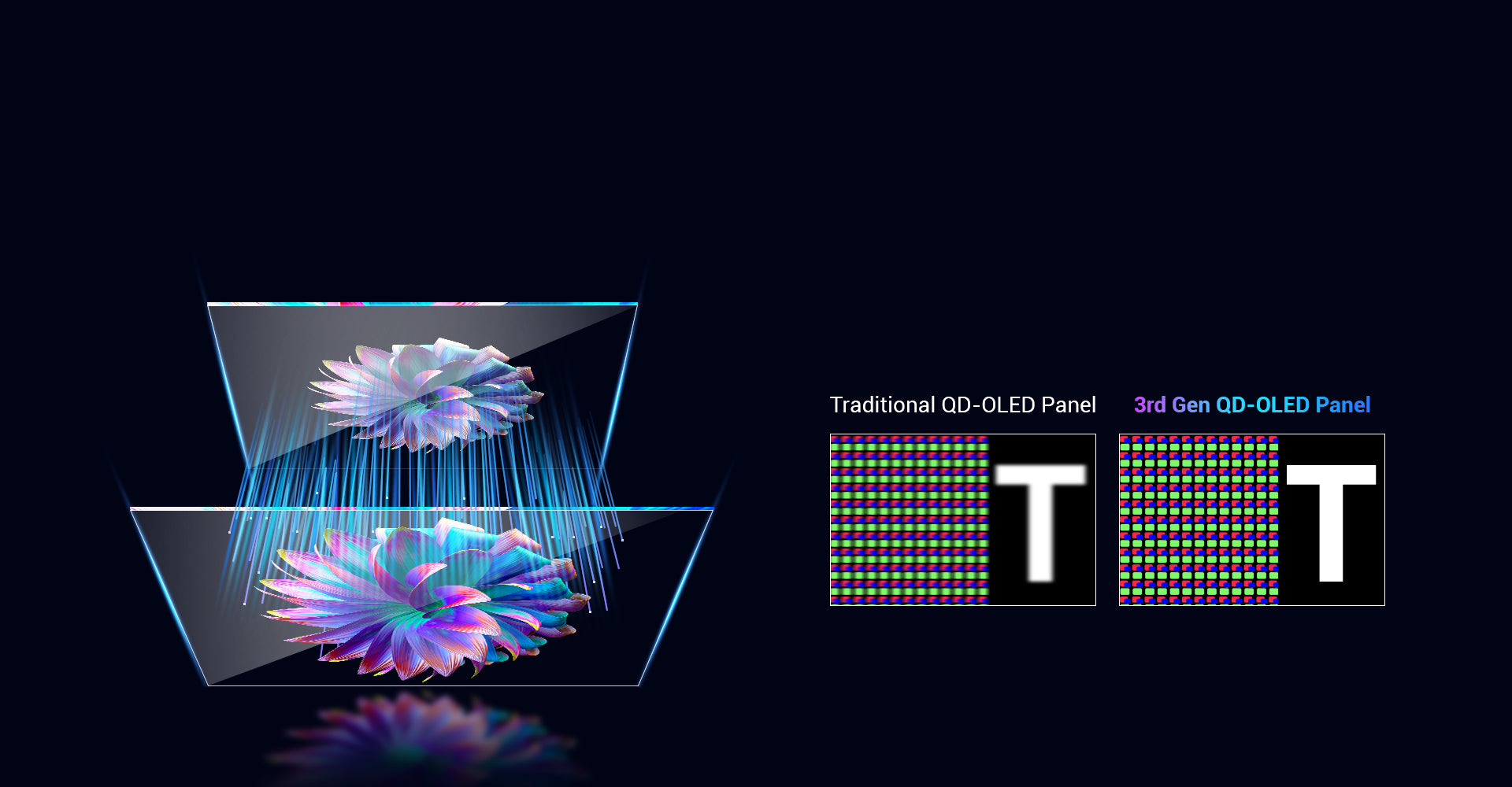 Equipped with a 3rd Gen QD-OLED panel. Optimized sub-pixel layout for clearer images and sharper text. Enhanced viewing experience.