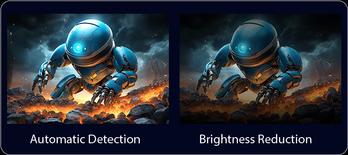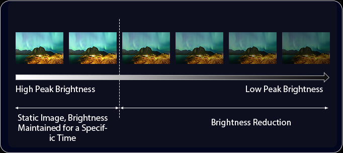 Automatically reduces overall brightness for static images to prevent screen aging.