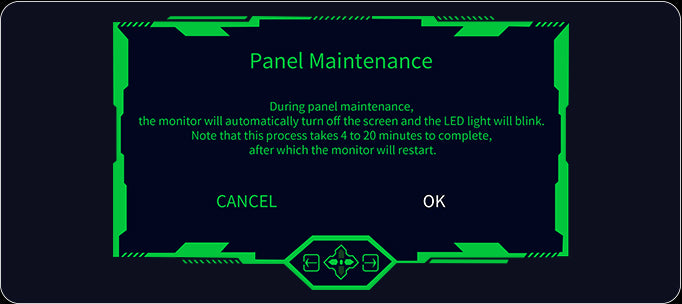 When this feature is enabled, the monitor will automatically prompt a panel maintenance reminder every 4 hours, reminding users to perform panel upkeep.