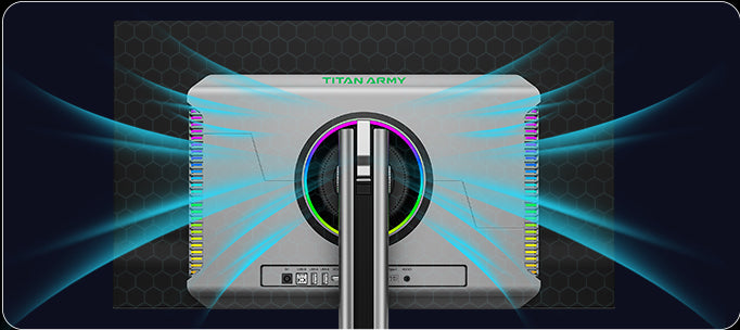 Immerse yourself in the game with the Titan Army G27T8T's dual high-fidelity speakers, delivering powerful audio without the need for external speakers. The Cyberpunk Future Aesthetic design, coupled with TITAN ARMY AURORA ambient lighting, adds a stylish touch to your gaming setup.