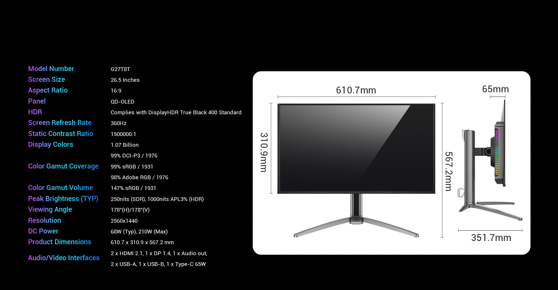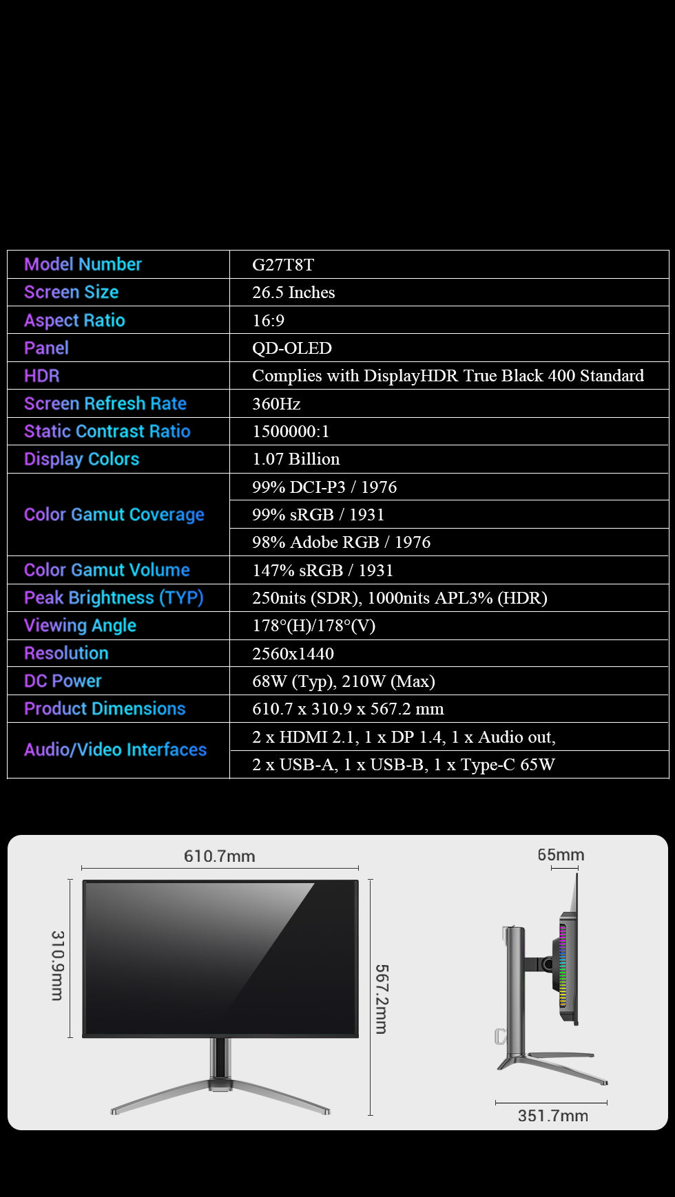 26.5 Inch丨2560x1440丨360Hz丨0.03ms丨QD-OLED