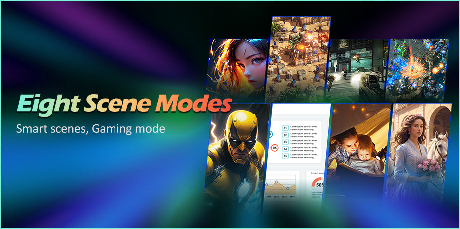 Eight preset modes cater to various needs,offering customizable screen effects and personalized parameter adjustments for a tailored, immersive experience.