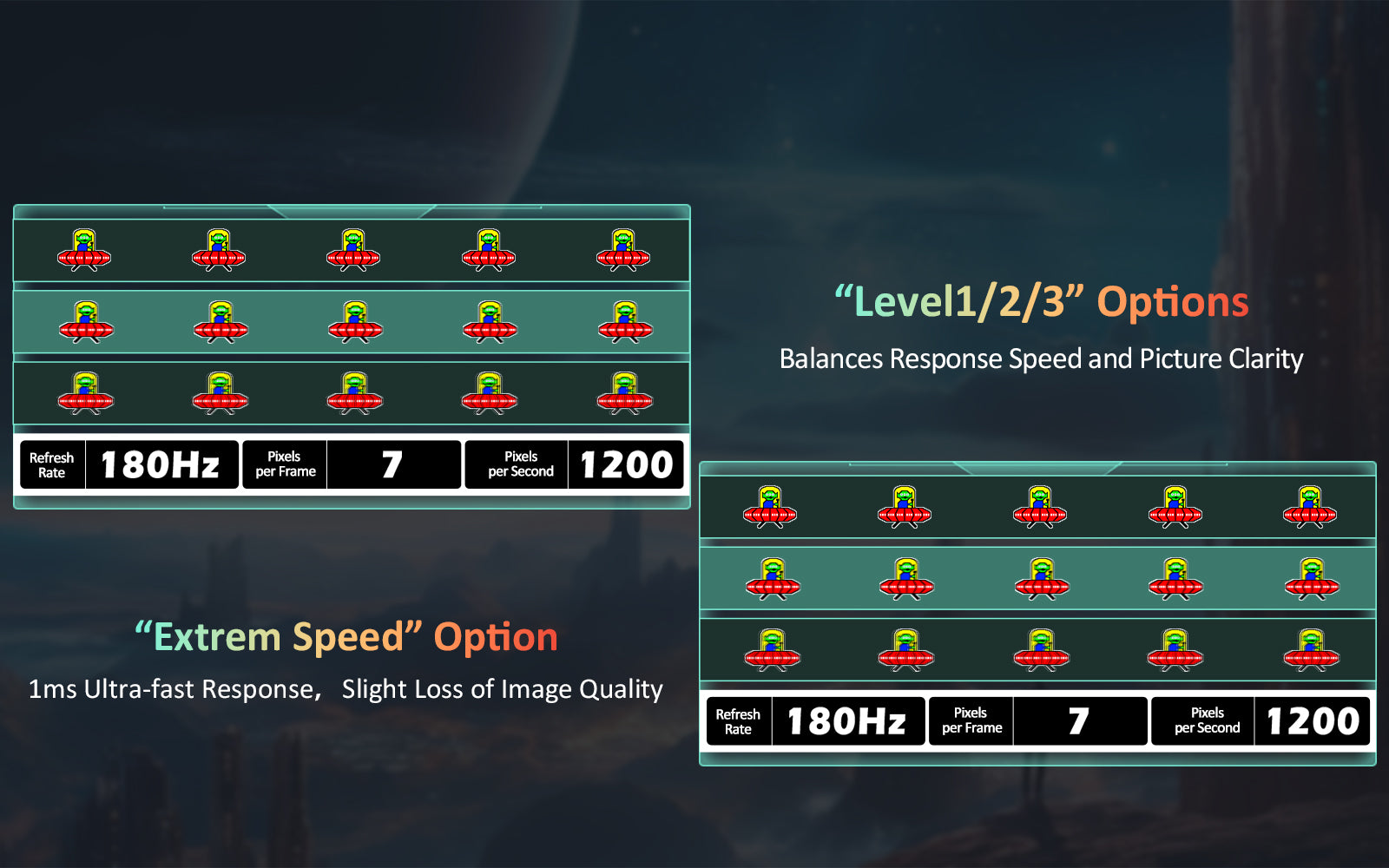 Automatically adjusts OD acceleration levels based on the monitor's refresh rate changes, optimizing dynamic clarity and minimizing ghosting when VRR is enabled.