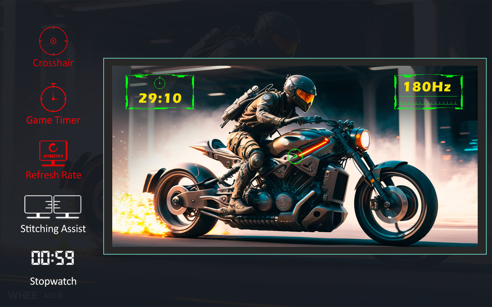 Precise crosshairs, customizable colors, in-game timers, refresh rate monitoring and dual-screen alignment enhance your gaming experience with enhanced strategy and multitasking.