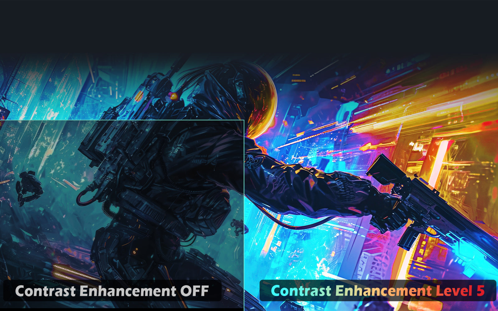 Enhances contrast for deeper, purer dark areas, improving overall picture quality.