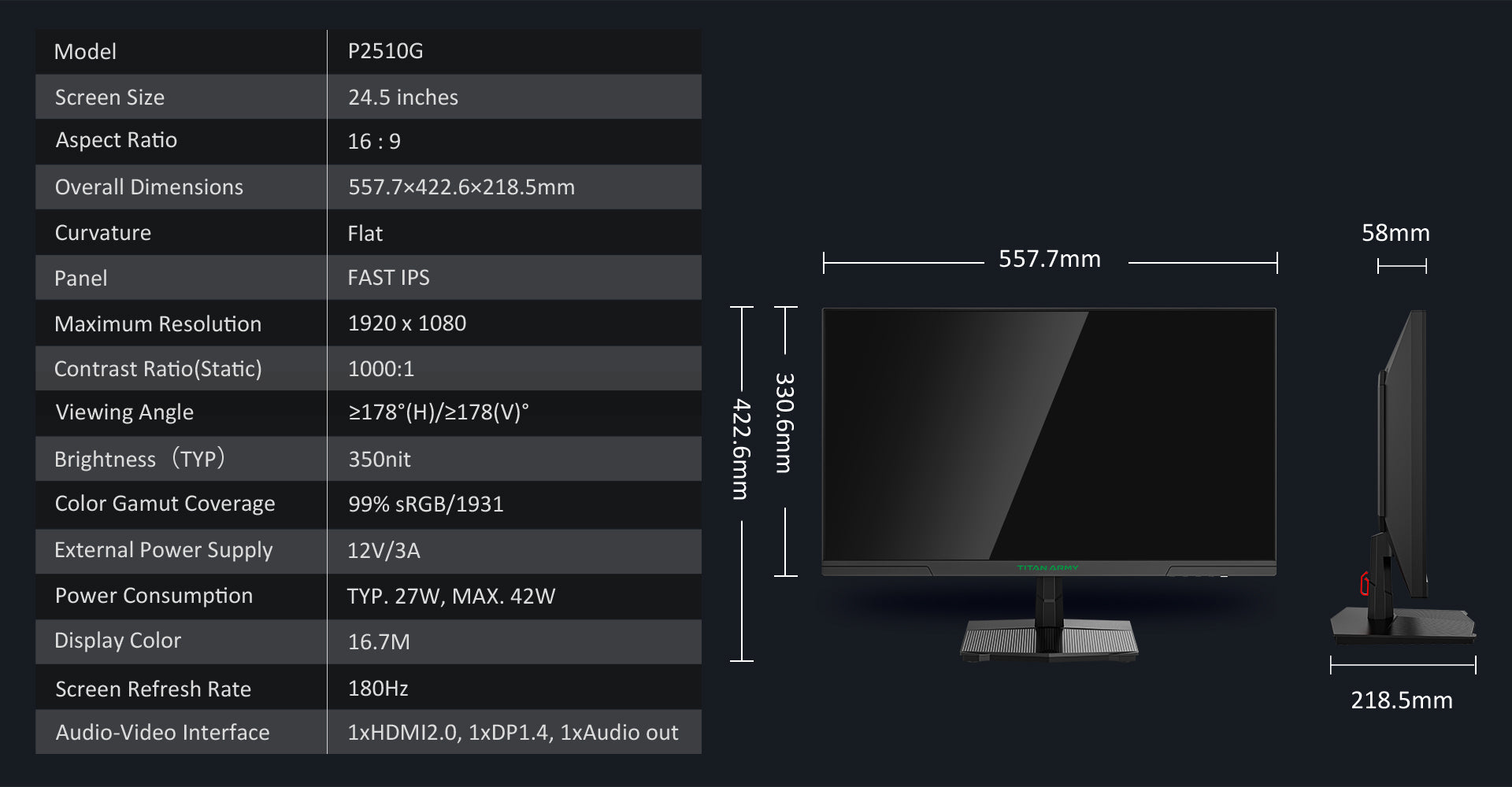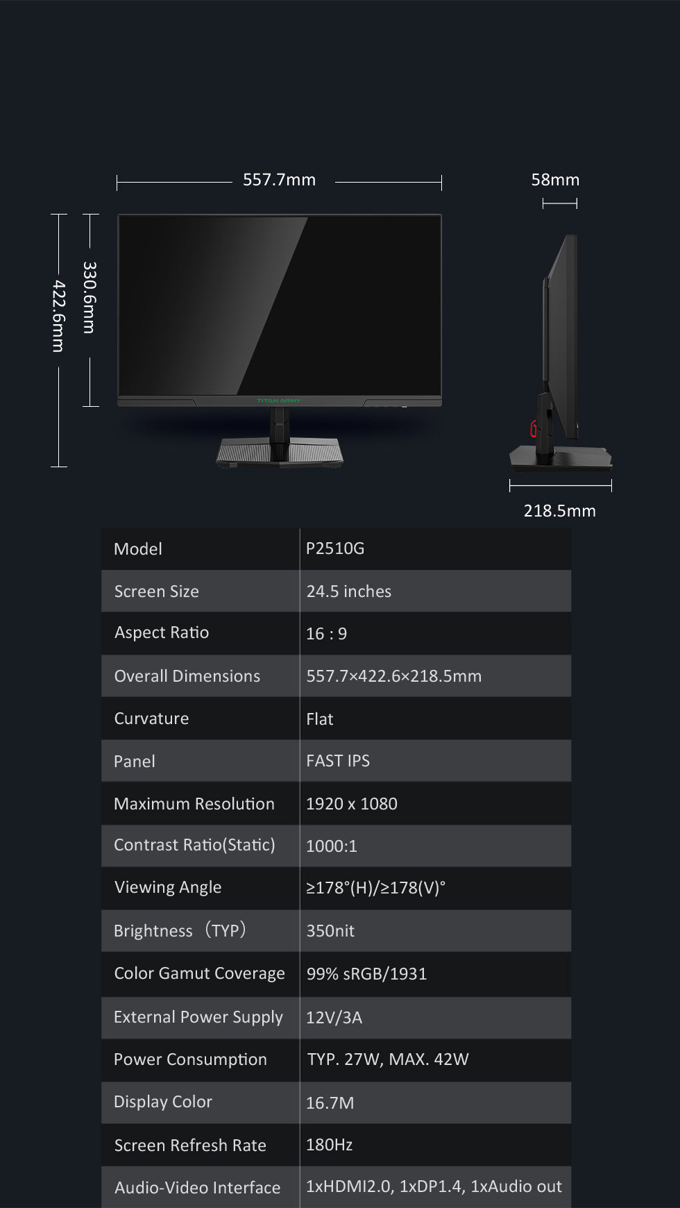 24.5 Inch丨1920×1080丨180Hz丨1ms丨IPS