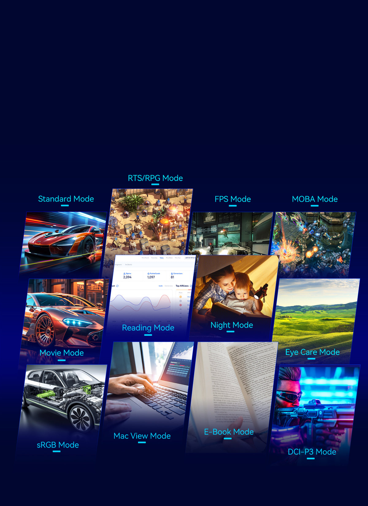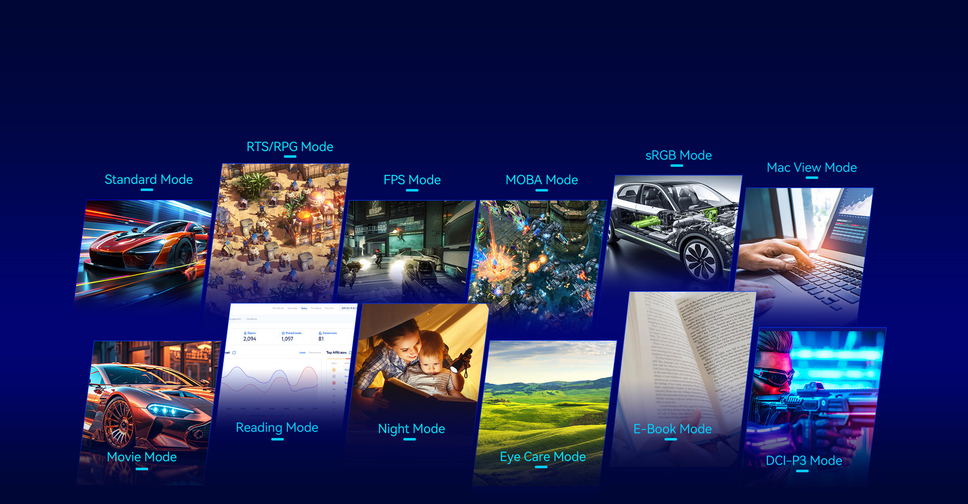 12 customizable modes are available for optimal viewing in gaming and daily life.