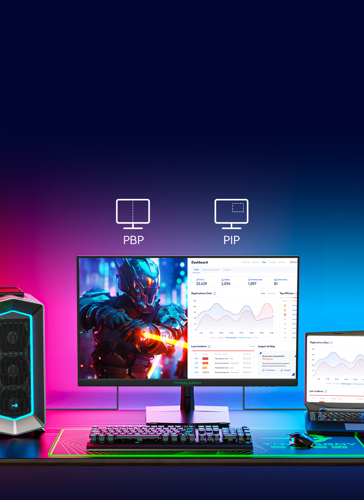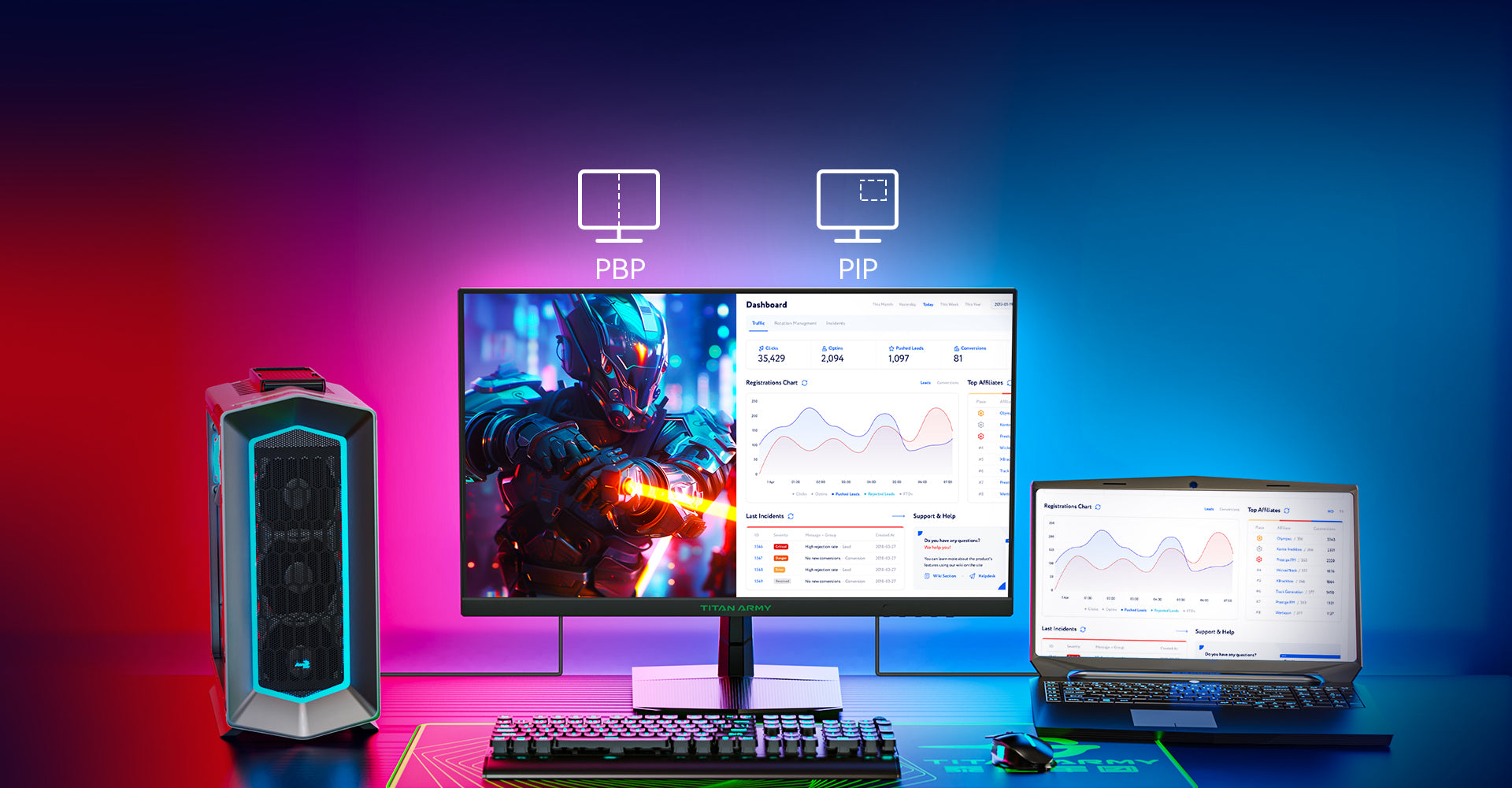Supports two video signals with PBP and PIP split-screen modes.