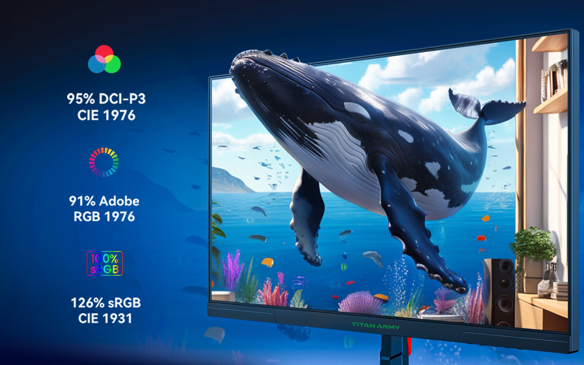 95% DCI-P3 coverage and native 8-bit color depth deliver vivid, accurate, and detailed colors.