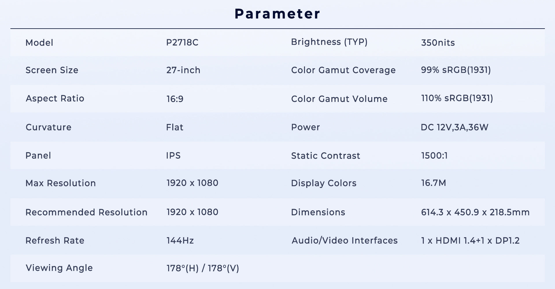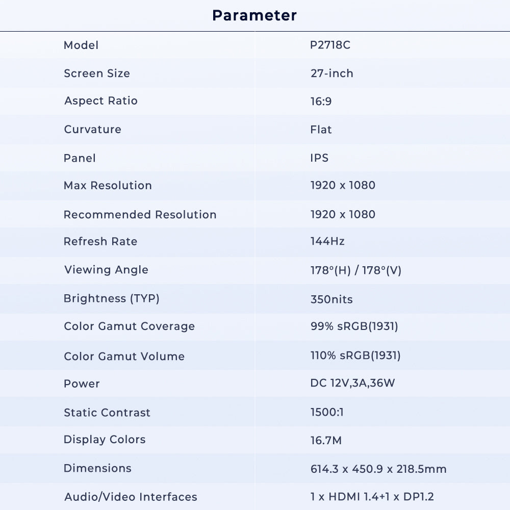 Dominate fast-paced battles with a 144Hz refresh rate that eliminates motion blur and ghosting. Paired with Adaptive-Sync technology, the P2718C synchronizes with your GPU to eradicate screen tearing and stuttering, ensuring seamless performance in esports, RPGs, or multitasking.