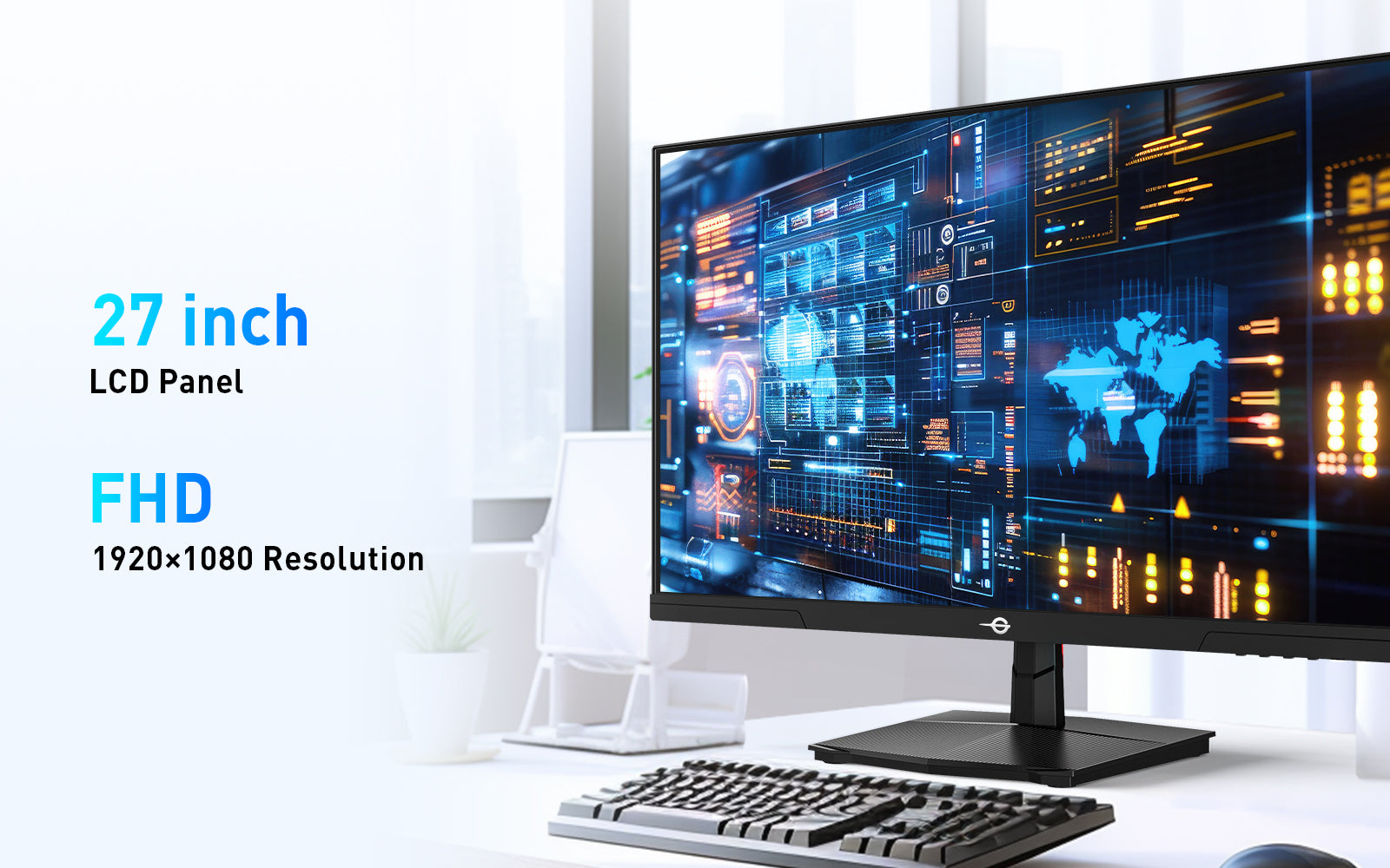 A 27-inch screen with FHD resolution offers sharp details and vibrant visuals, making gaming more exciting, movies more immersive, and work more efficient.