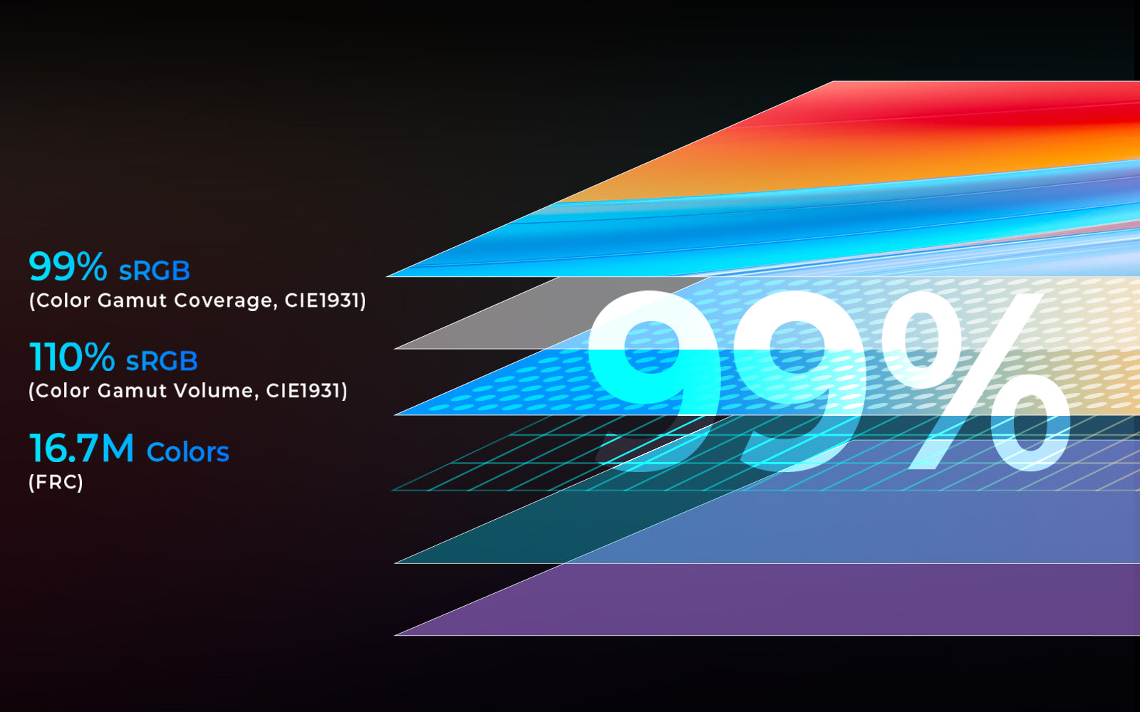 With 99% sRGB color gamut coverage, it delivers true-to-life colors and vibrant visuals for a more immersive viewing experience.
