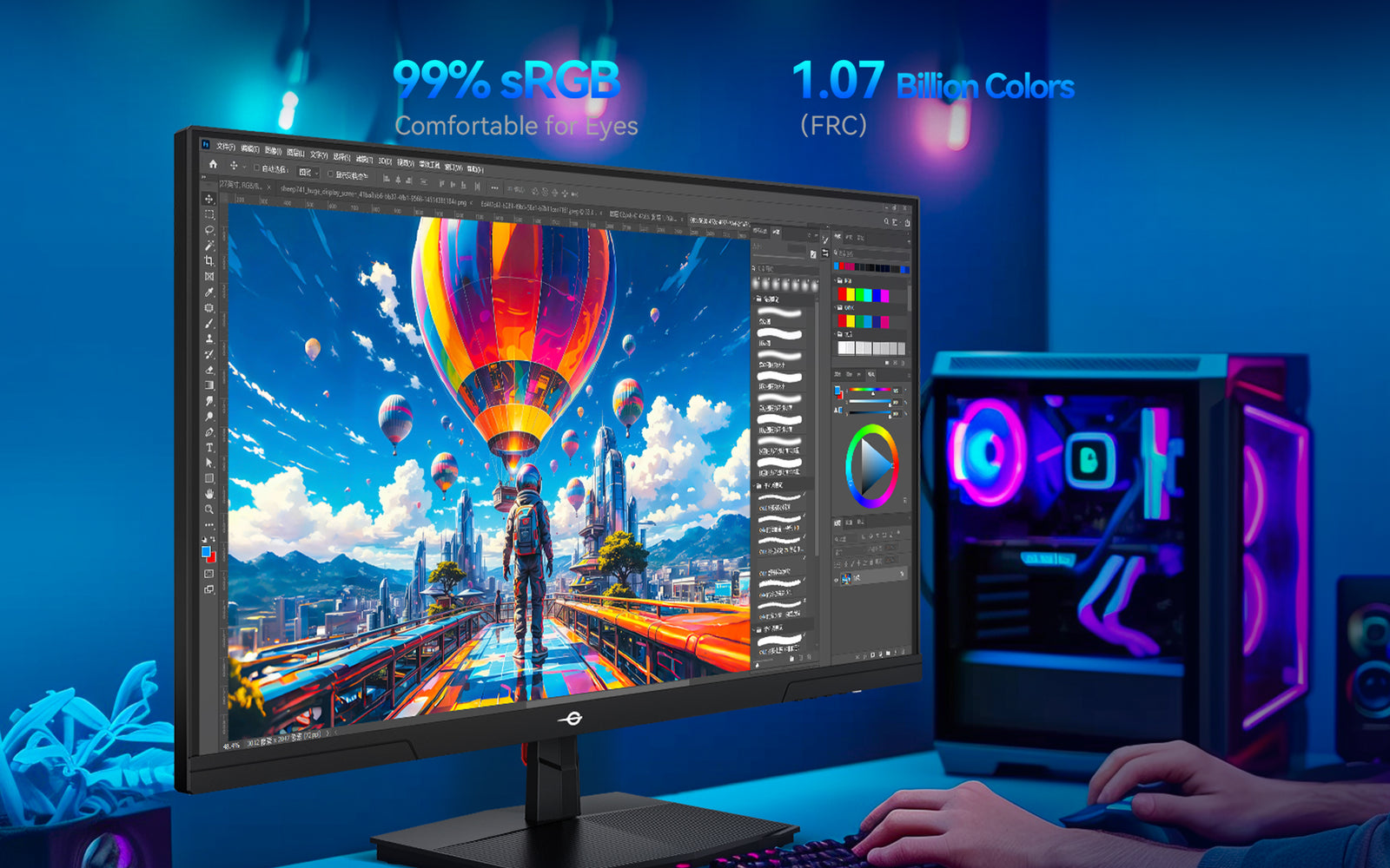 99% sRGB supports 1.07 billion colors, ensuring each image is rich, vivid,and accurately reproduced with detailed colors and no banding.
