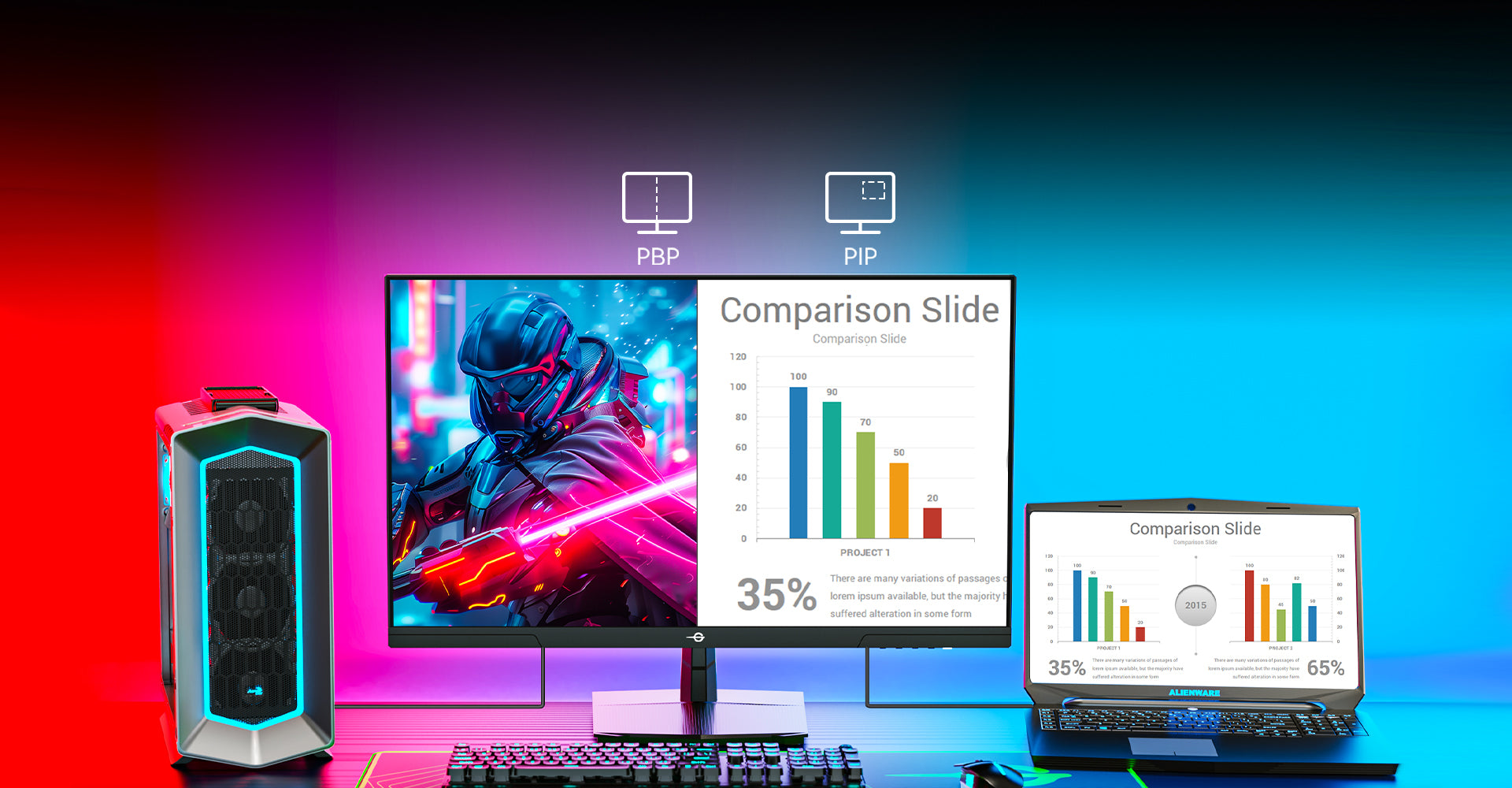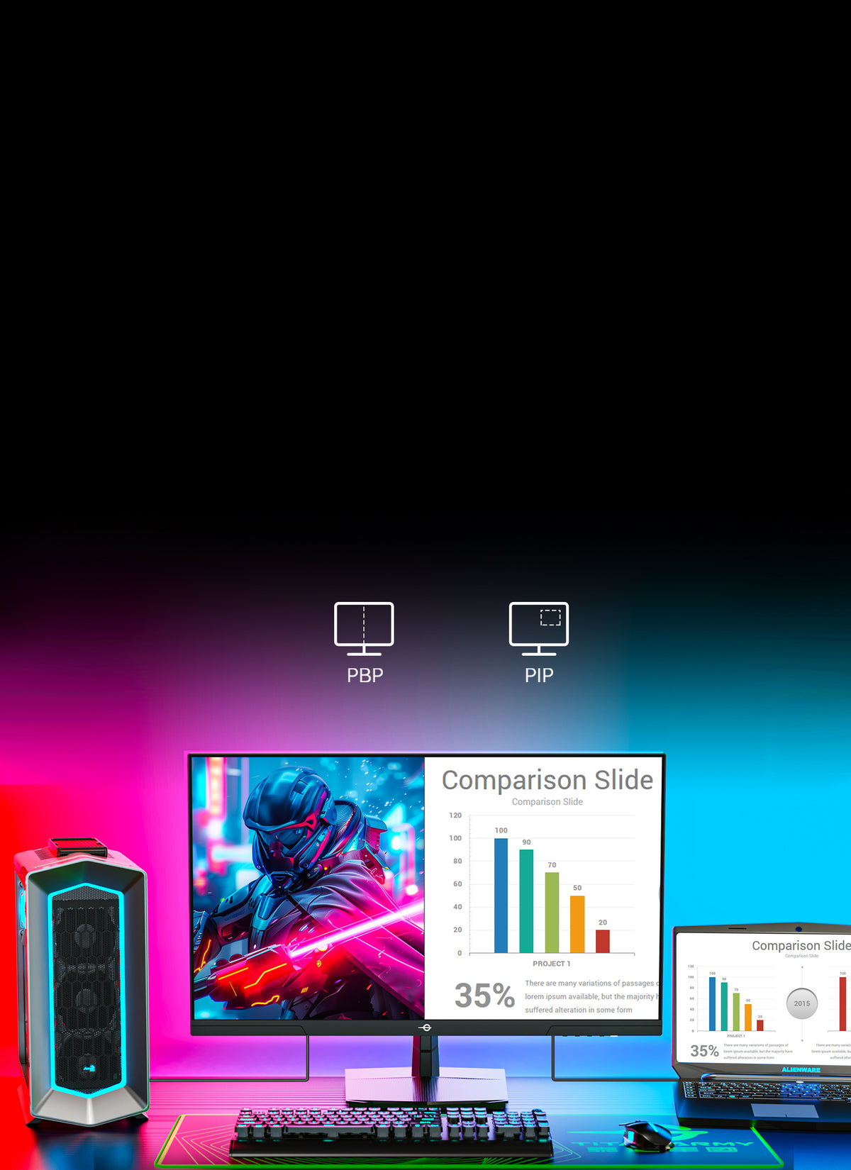Equipped with sPX Mode, the Titan Army P27GR supports 4K 60Hz+HDR+VRR+ALLM for console connections, ensuring high-quality visuals and smooth gameplay. The PIP/PBP function allows simultaneous display of two video signals, making it perfect for multitasking and enhancing productivity.