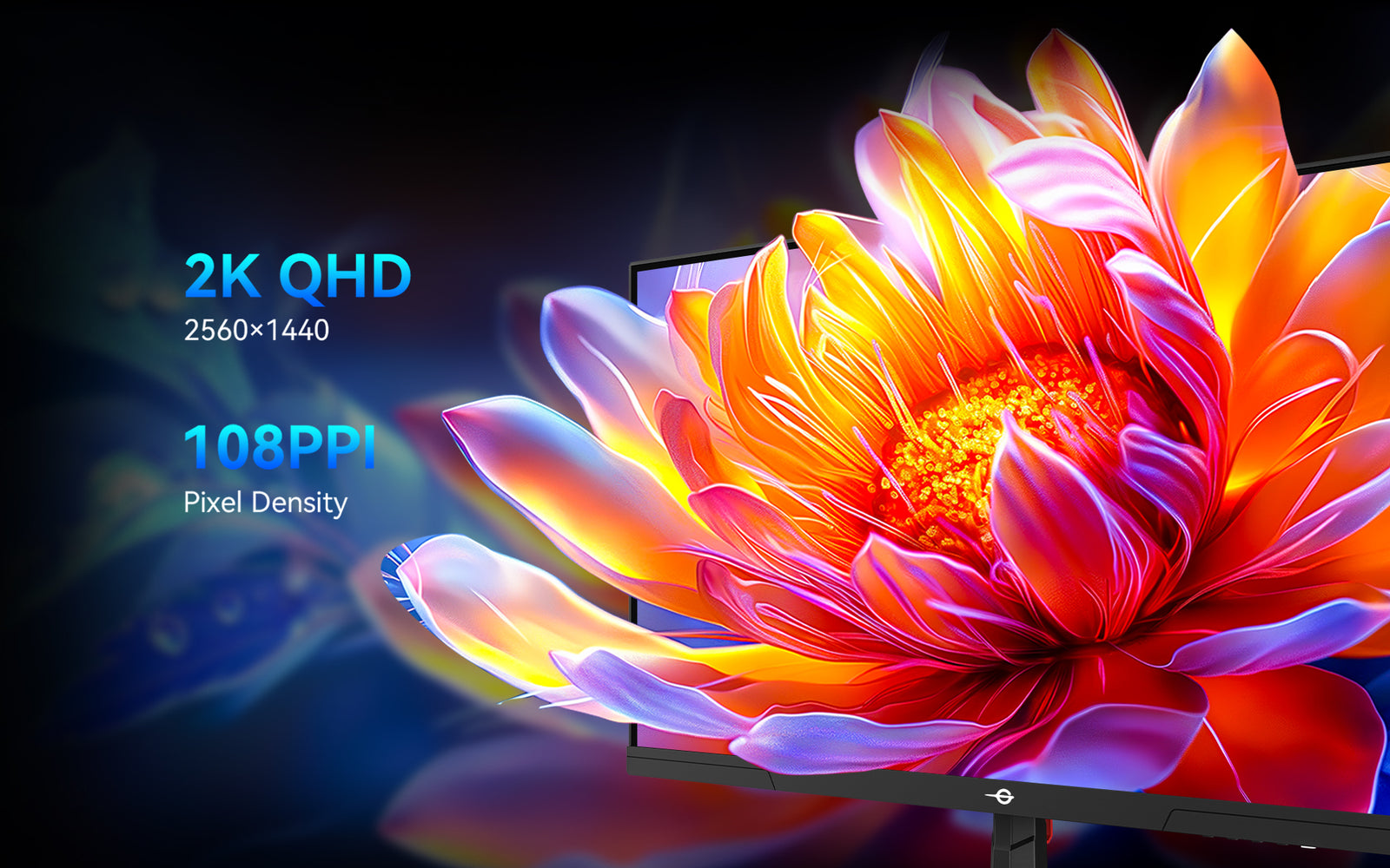 The 27-inch screen offers 2K QHD resolution (2560x1440) with 108 PPI, revealing every detail with remarkable clarity. This golden size is perfect for various scenarios, including gaming, watching movies, editing, and design work, making it a versatile choice for all your visual needs.