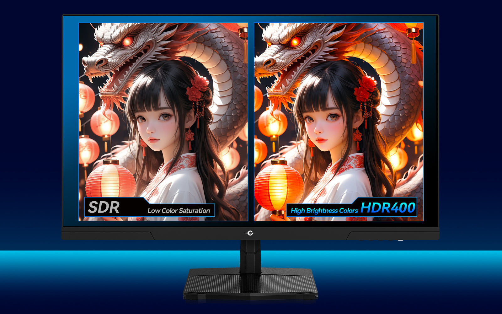 Supports HDR400 for richer lighting, deeper shadows, and enhanced contrast, delivering lifelike images. Enjoy more immersive movies and games with preset HDR Auto, HDR Gaming, and HDR Movie modes.